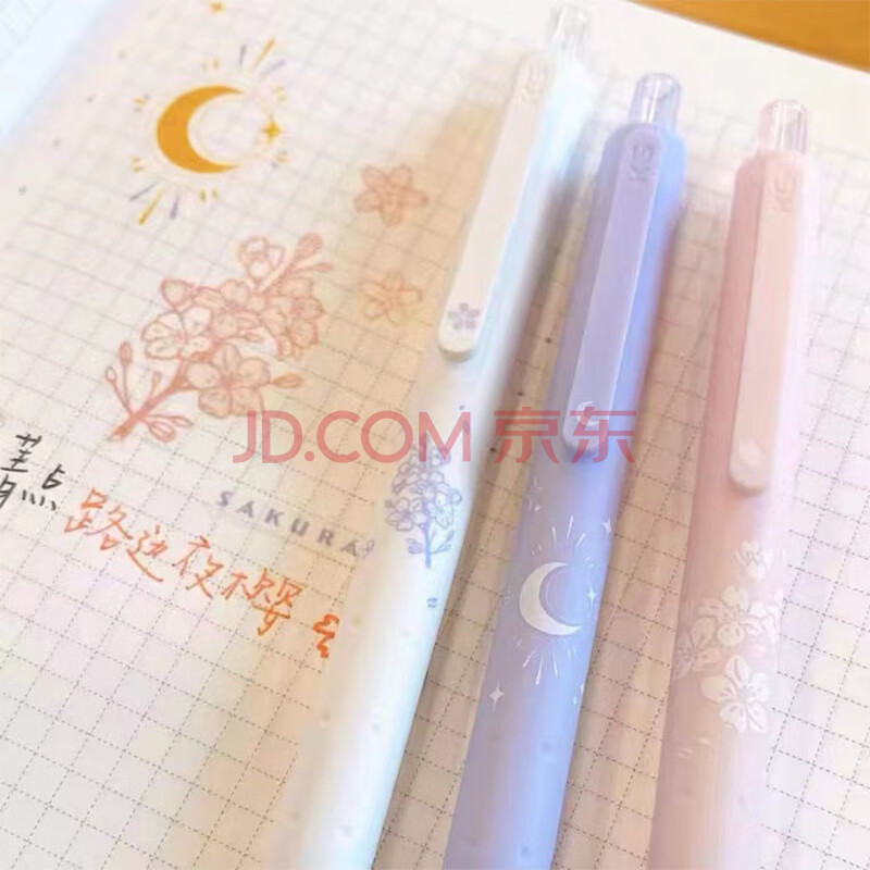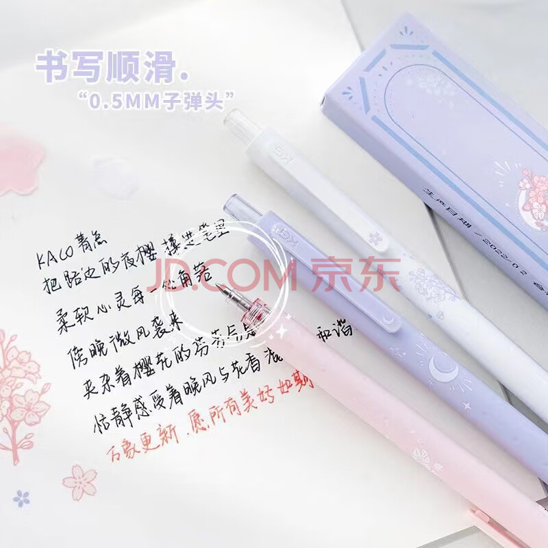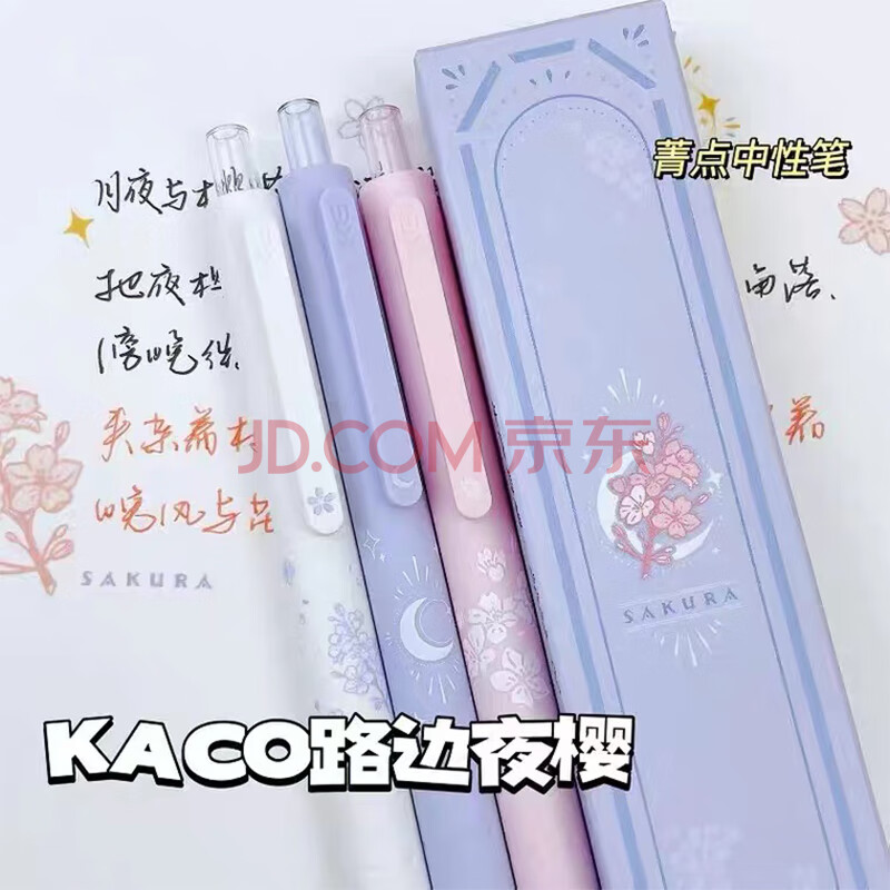 商品相册:【开学必备】KACO菁点樱花按动中性笔高颜值0.5mm子弹头签字笔刷题水笔3支/盒(2黑芯1粉芯)路边夜樱第