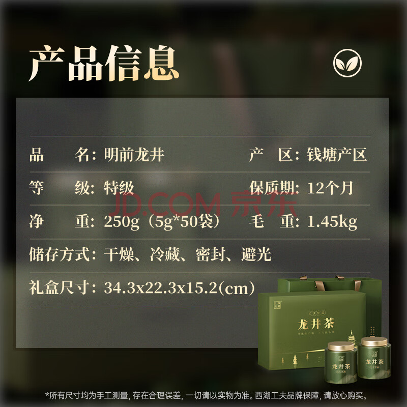商品相册:西湖工夫【2026新茶上市】明前特级龙井绿茶春茶叶礼盒装250g高档送老丈人第