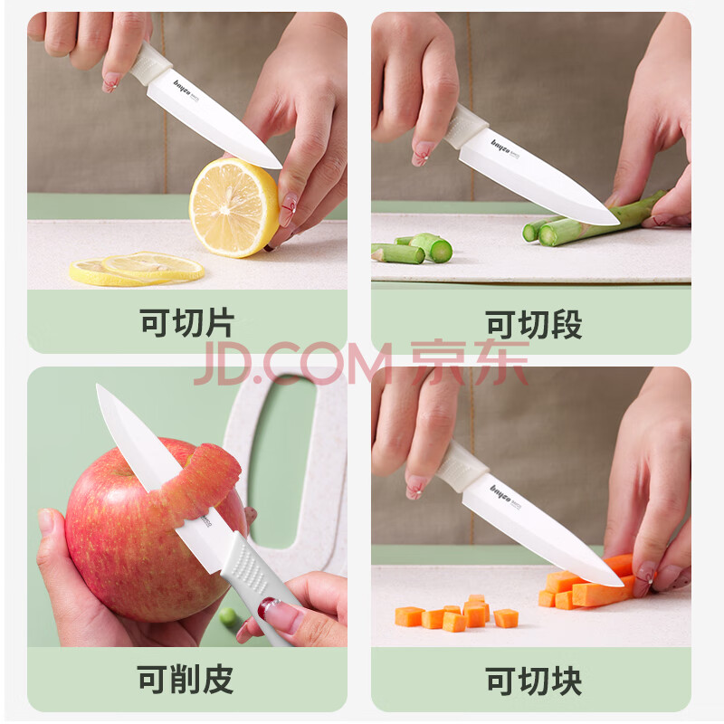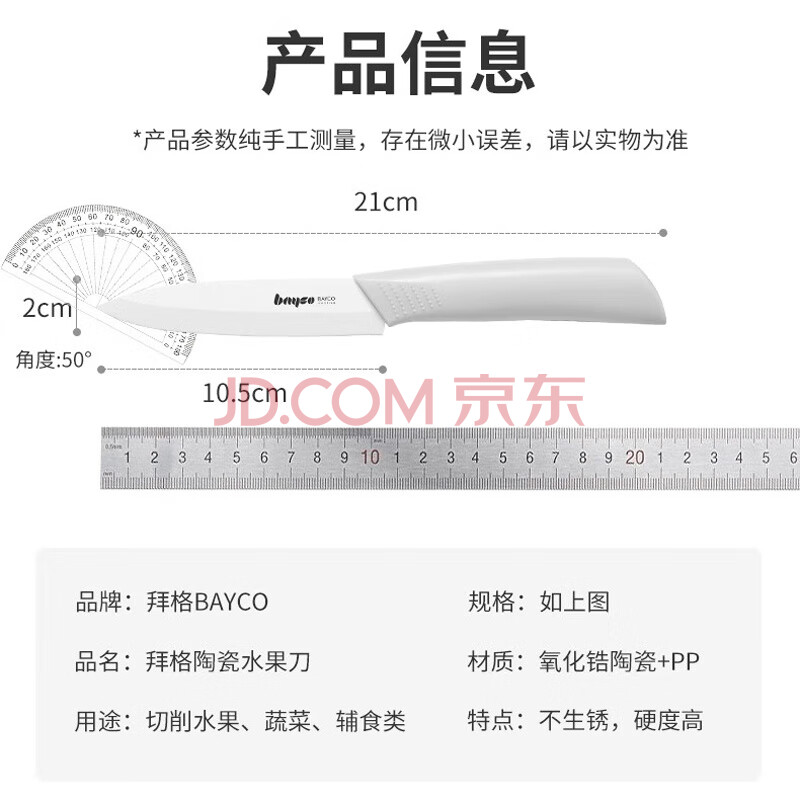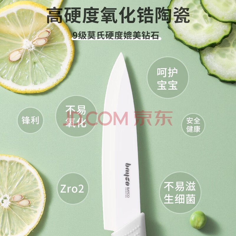 商品相册:拜格(bayco)陶瓷刀水果刀4英寸家用削皮刀便携辅食免磨小刀带刀套BD39196第