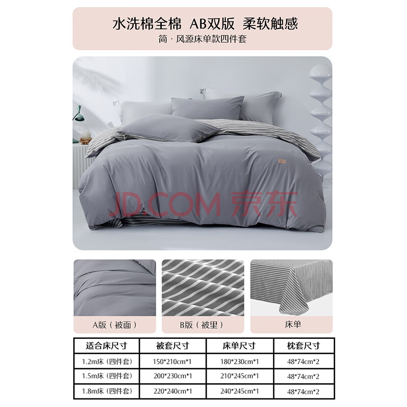 商品相册:水星家纺四件套床上用品纯棉100%全棉水洗棉亲肤透气被套枕套床单1.8m床第