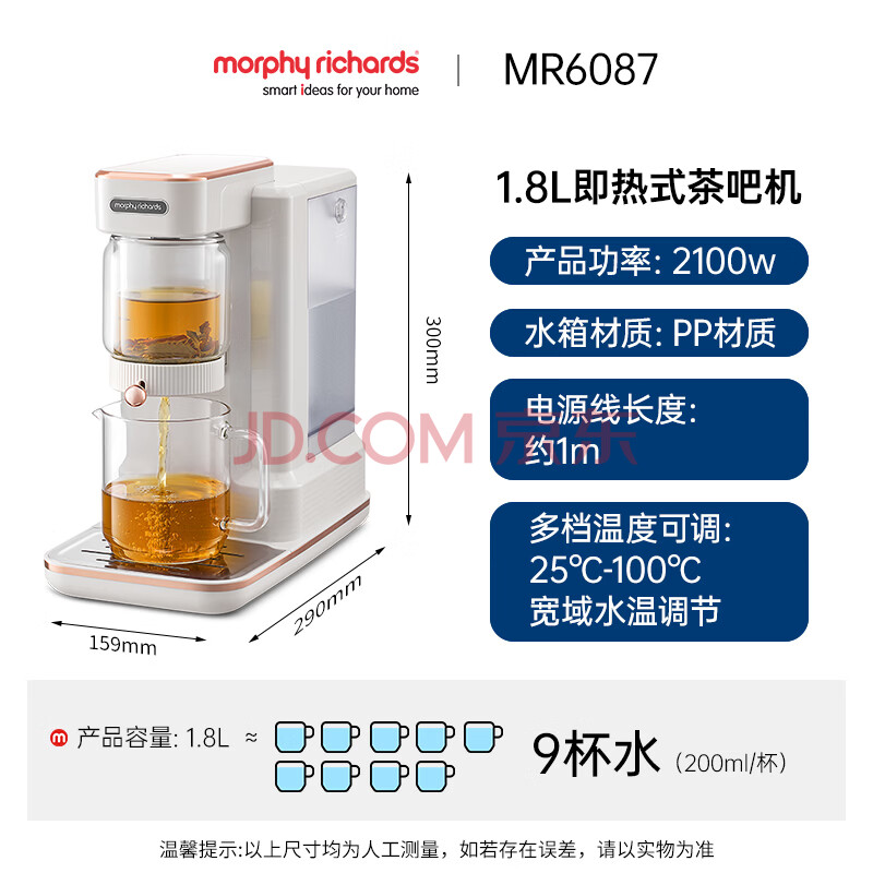 商品相册:摩飞电器(Morphyrichards)电热水壶电热水瓶 家用1.8L即热式茶饮机泡茶机养生壶煮茶器 多功能台式烧水直饮水机MR6087白第
