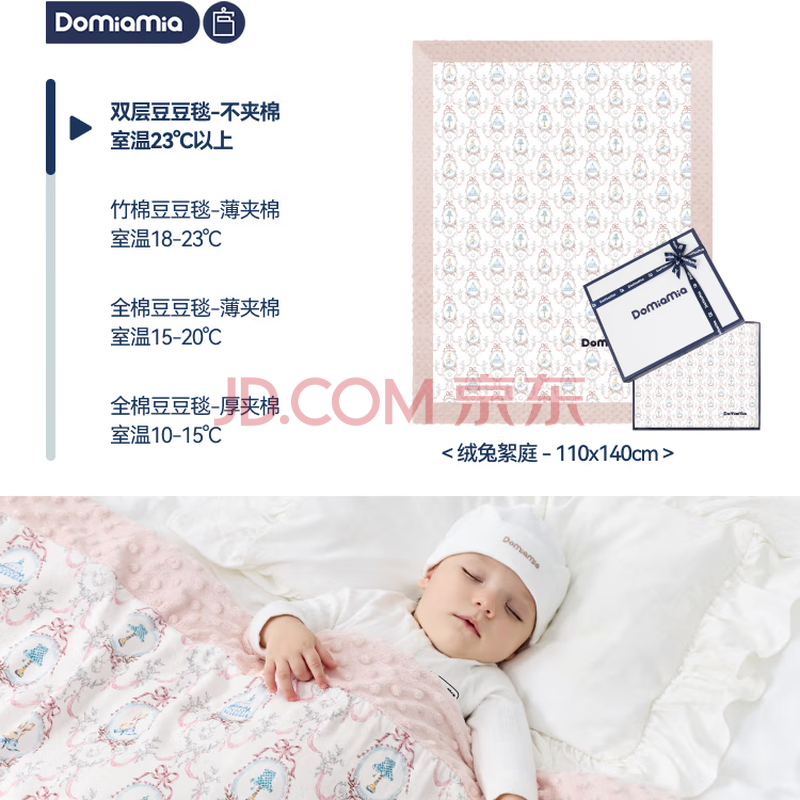 商品相册:DOMIAMIA豆豆被婴儿被子豆豆毯宝宝盖毯安抚被儿童被子毛毯双层110×140第1张/共4