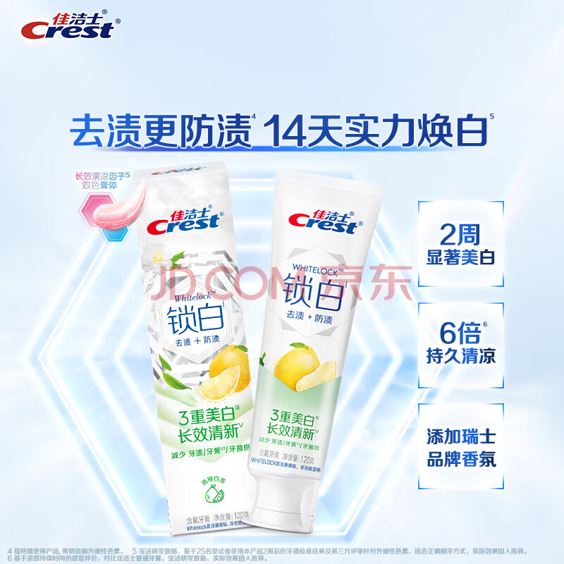 商品相册:佳洁士锁白青柚白茶牙膏去渍美白清新口气去黄含氟120g京东自营第