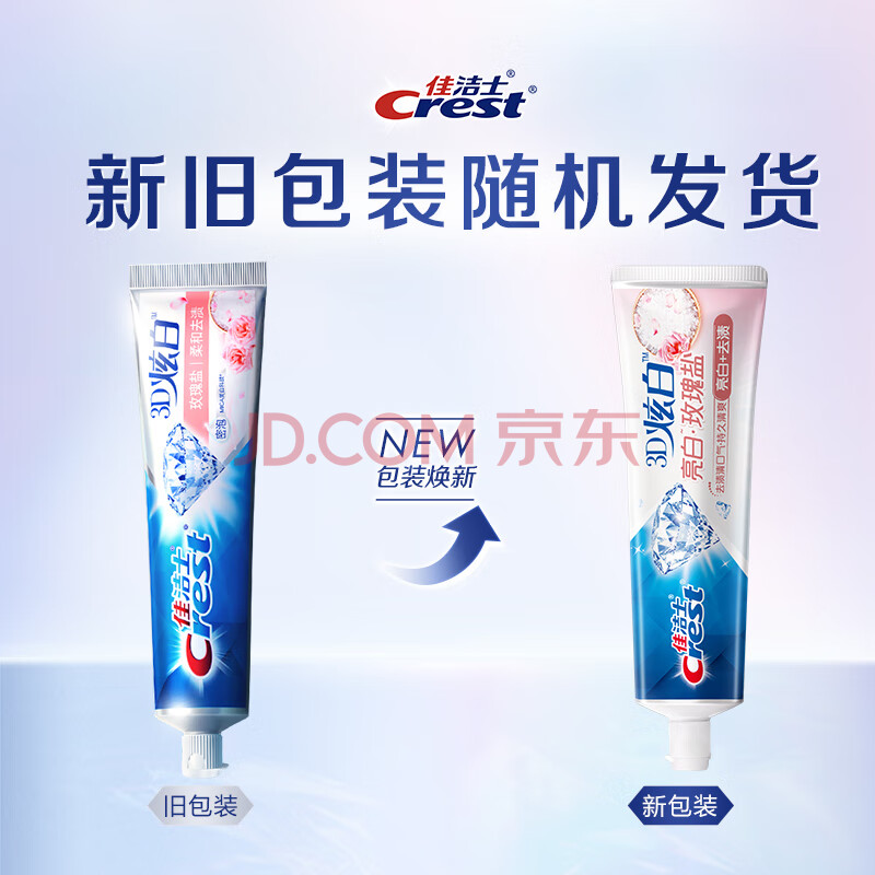 商品相册:佳洁士3D炫白玫瑰盐牙膏美白去黄去牙渍含氟170g京东自营新老包装混发第