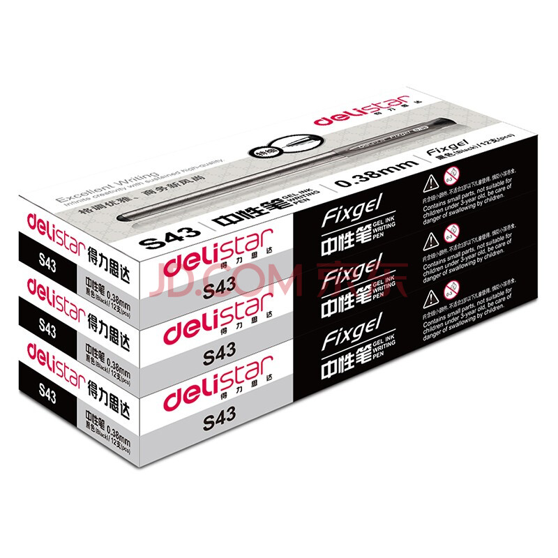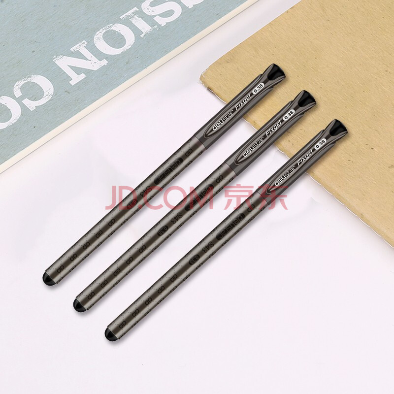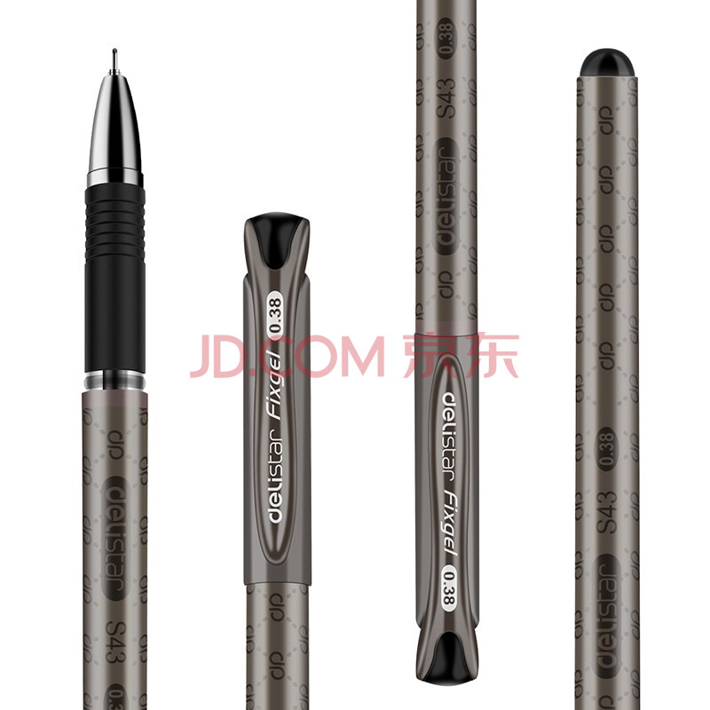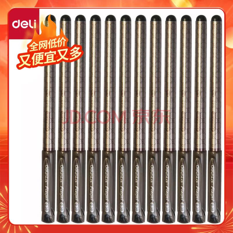 商品相册:得力(deli)0.38mm黑色全针管财务中性笔 优雅十字纹细杆12支/盒第