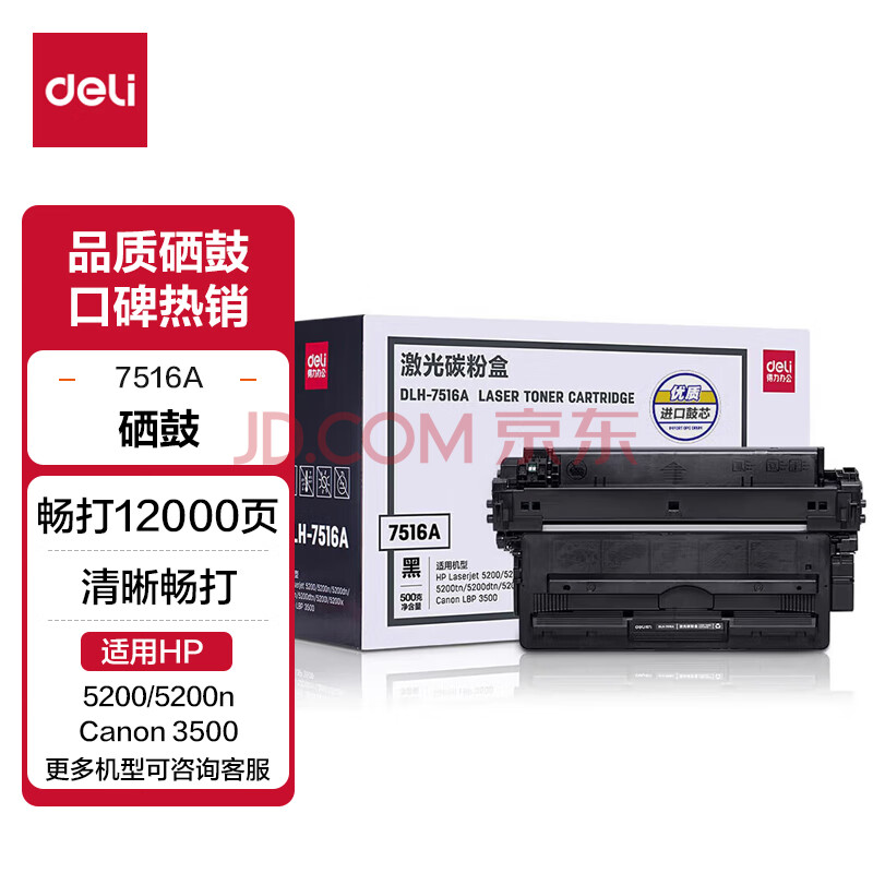 商品相册:得力(deli)7516A硒鼓 适用惠普HP 5200/5200n/dn/tn/dtn/l/lx 佳能Canon 3500打印机硒鼓 大容量黑色第
