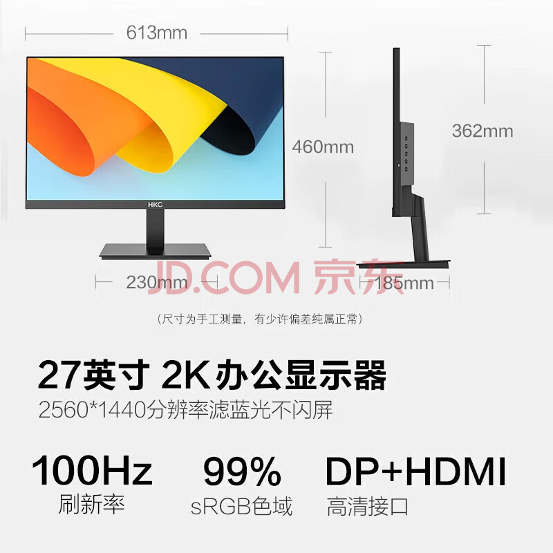 商品相册:HKC 27英寸2K高清100Hz显示器HDR10硬件低蓝光广视角HDMI接口家用电子书办公液晶电脑显示屏S2716Q第