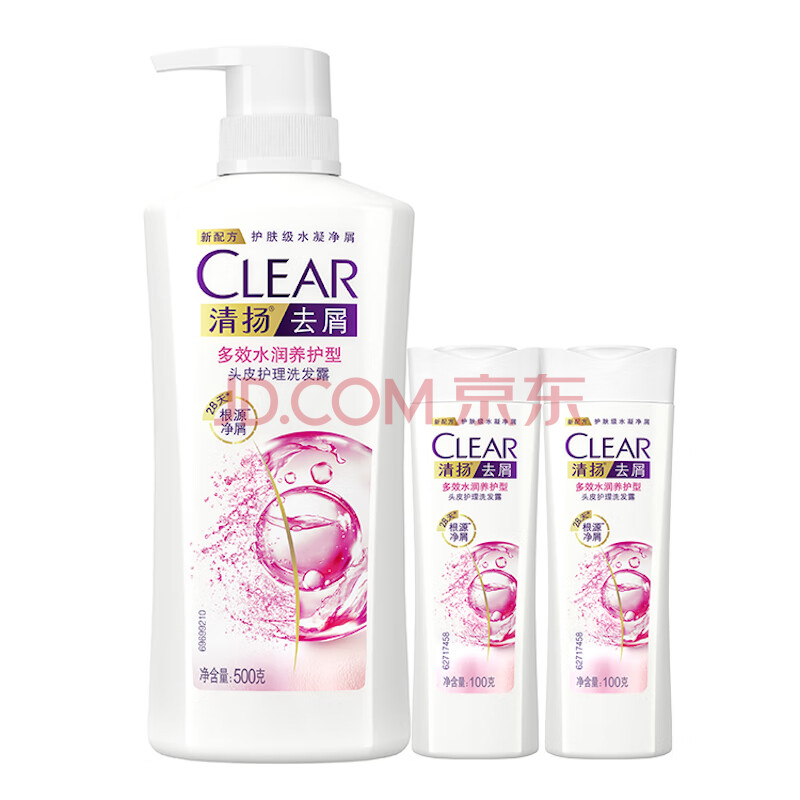商品相册:清扬女士去屑洗发水 多效水润500g+试用装100gx2 玻尿酸净屑洗头膏第