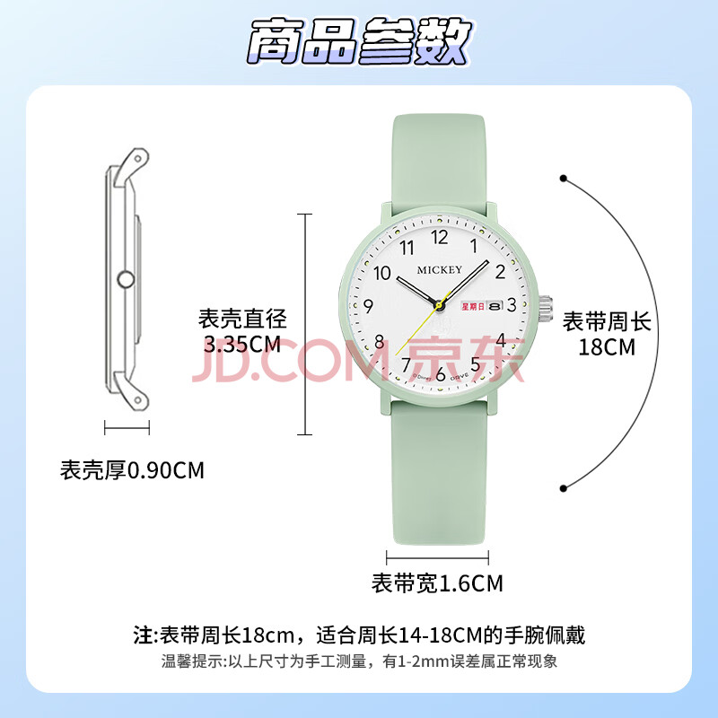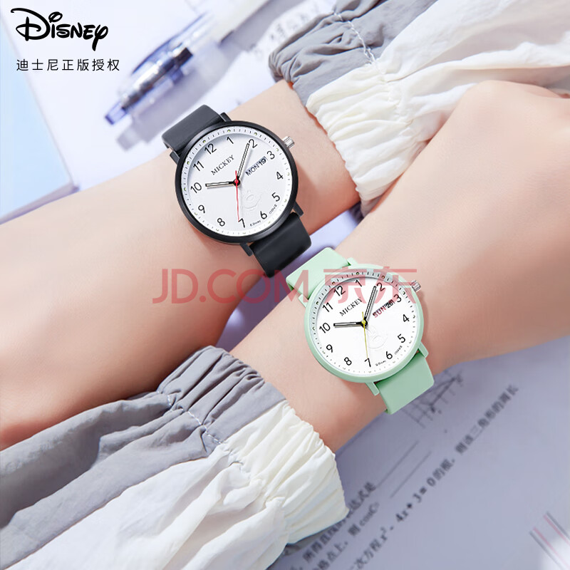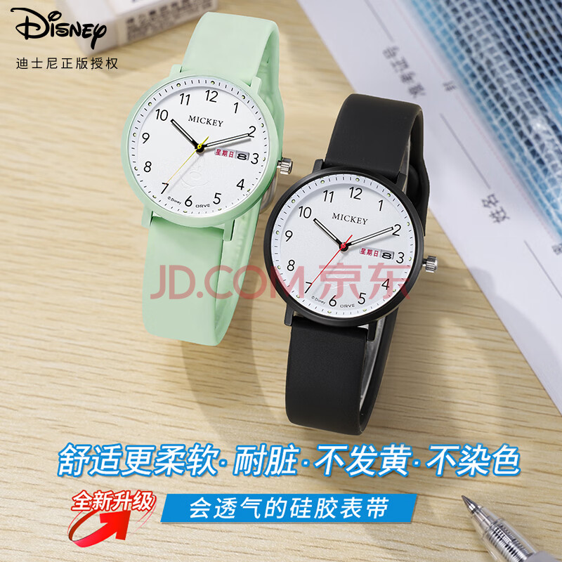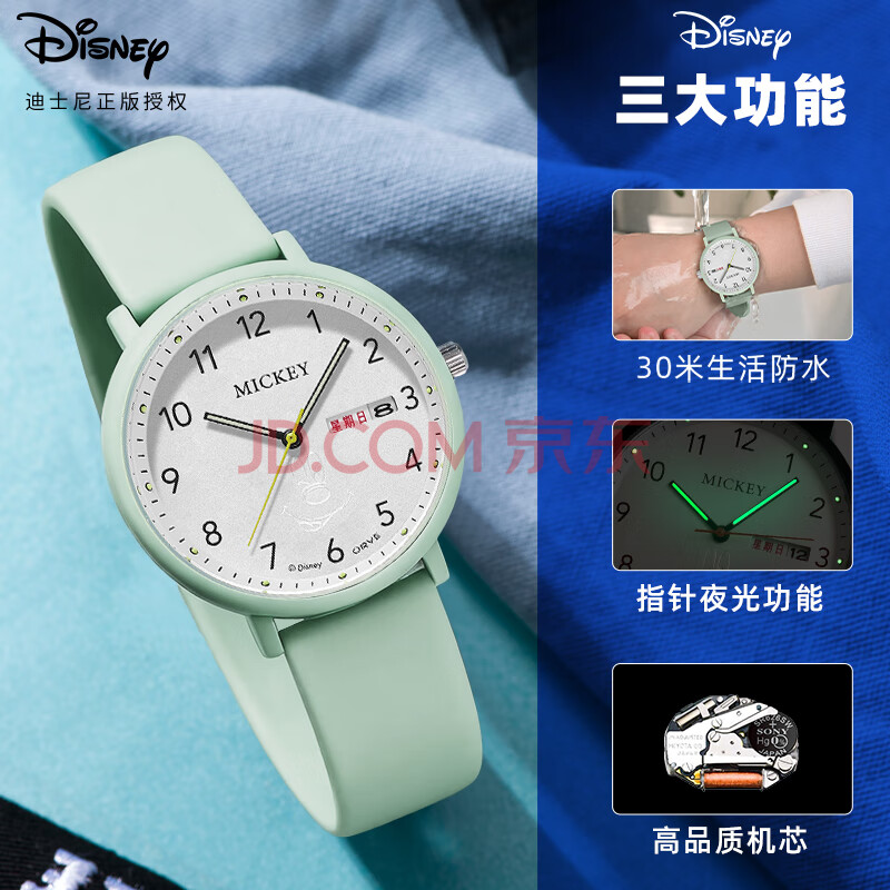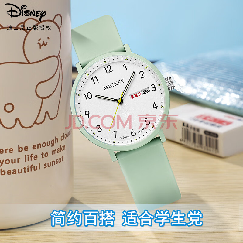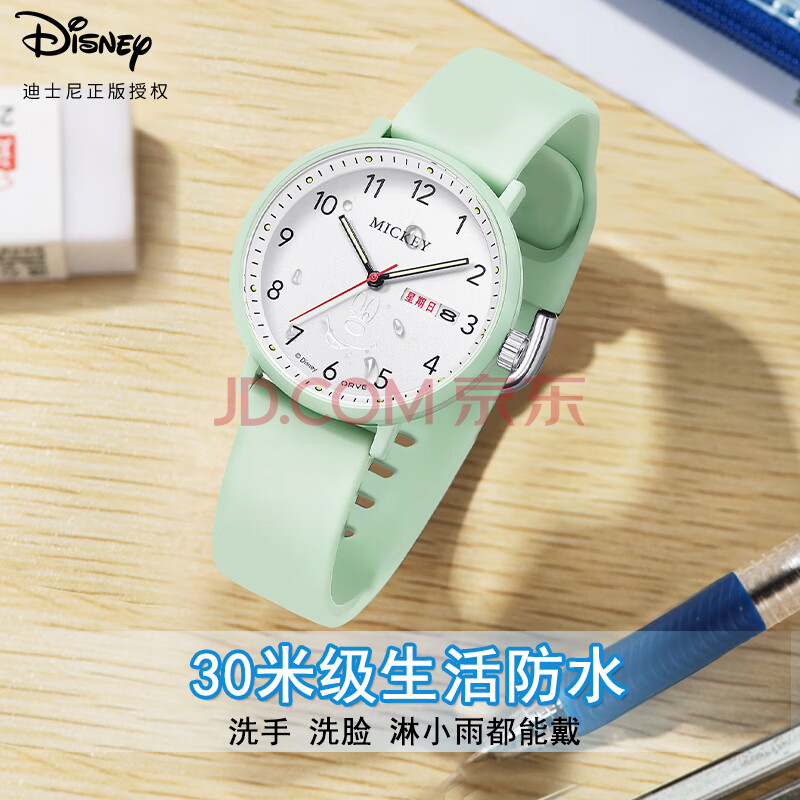 商品相册:迪士尼(Disney)学生手表简约防水石英表双日历初中生高中生考试手表MK-11809GN第