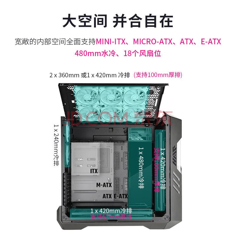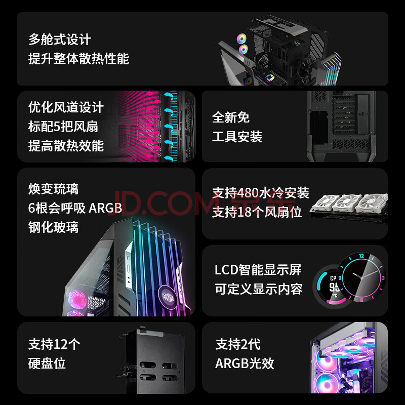 商品相册:酷冷至尊(CoolerMaster)HAF700EVO EATX全塔电脑机箱 支持480散热水冷/LCD显示/18x风扇位/免工具装/4090第1张/共8