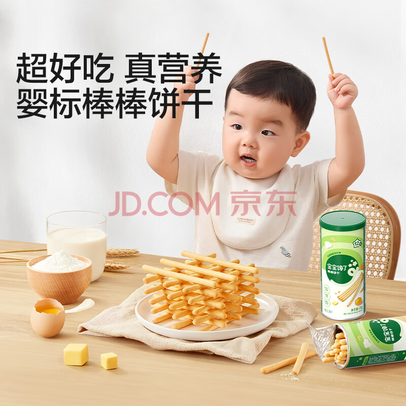 商品相册:宝宝馋了婴幼儿棒棒饼干手指饼干一岁宝宝零食炭烧棒不添加食盐70g第