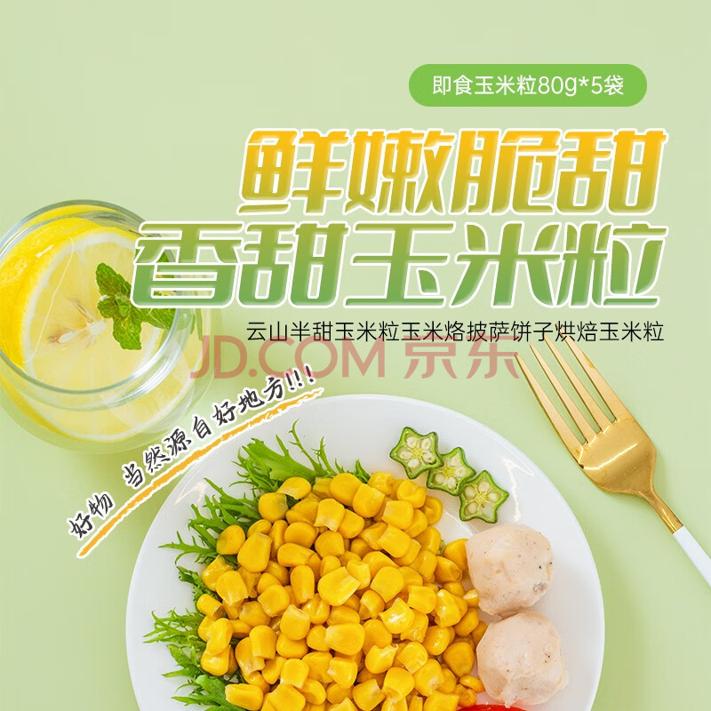商品相册:云山半水果甜玉米粒80g*5开袋即食真空低脂轻速食沙拉披萨烧烤原料直抽第
