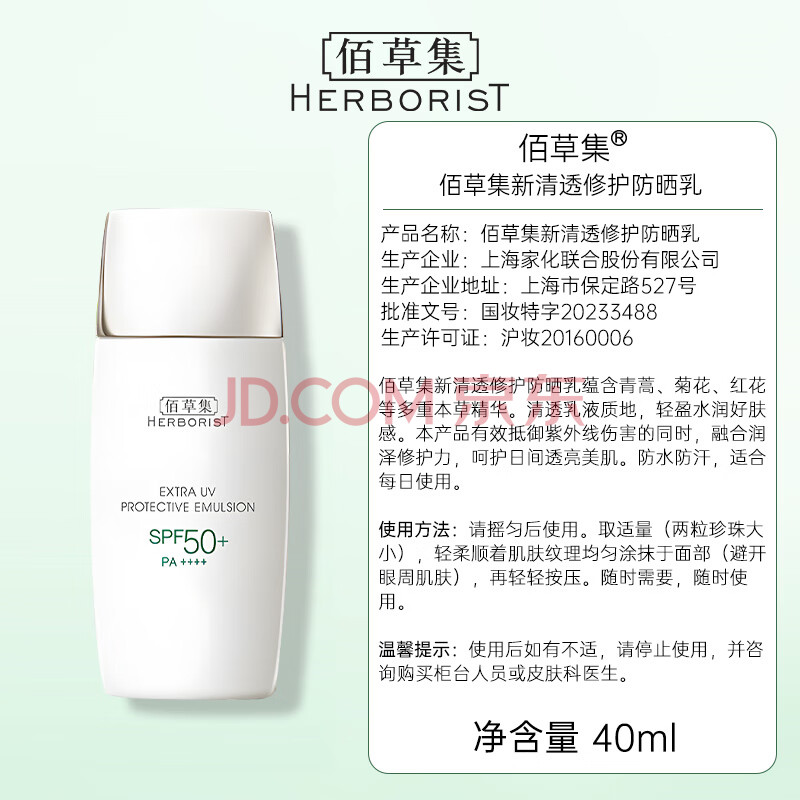 商品相册:佰草集防晒霜40ml清爽户外高倍防晒隔离霜SPF50+PA++++轻薄妆前乳第
