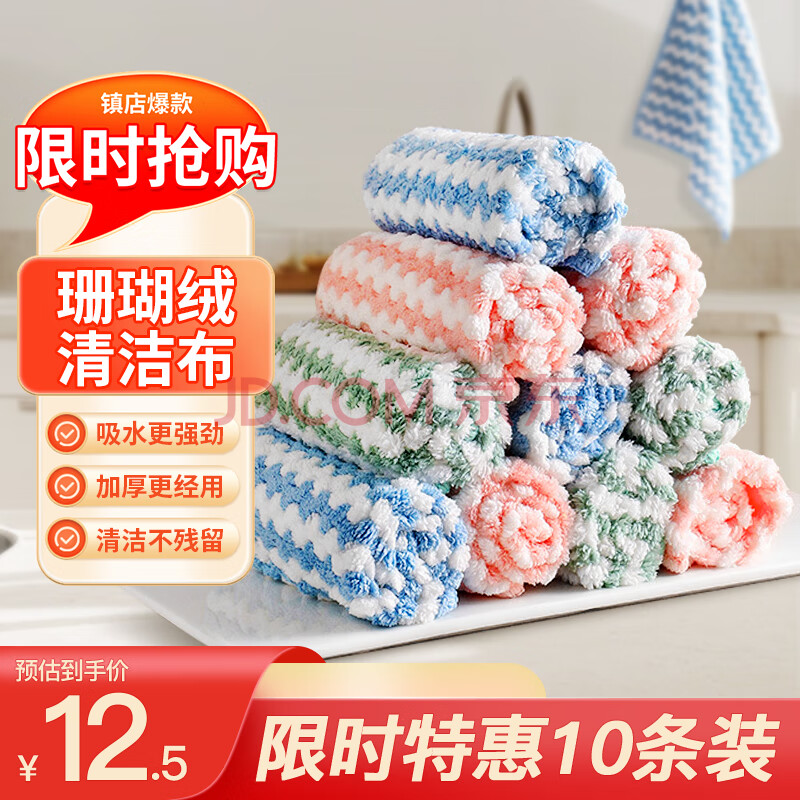 商品相册:妙然珊瑚绒抹布25*25cm*10条吸水厨房洗碗布百洁布擦手巾家务清洁抹布第