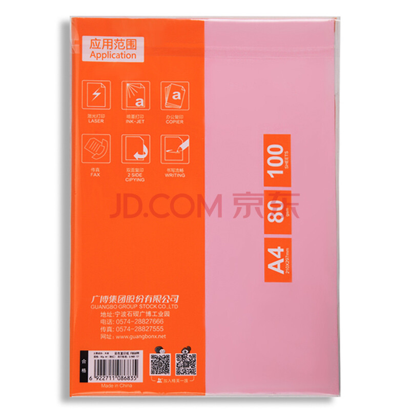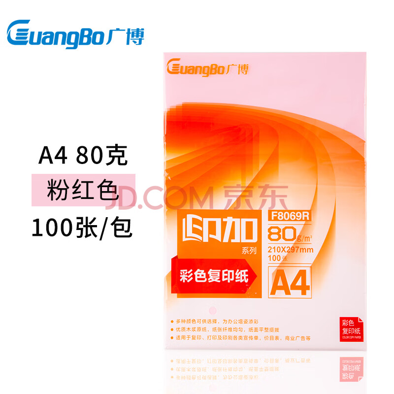 商品相册:广博(GuangBo)A4彩色复印纸80g粉红印加系列手工折纸打印纸 儿童剪纸 彩色卡纸 桌牌台卡纸100张/包F8069R第