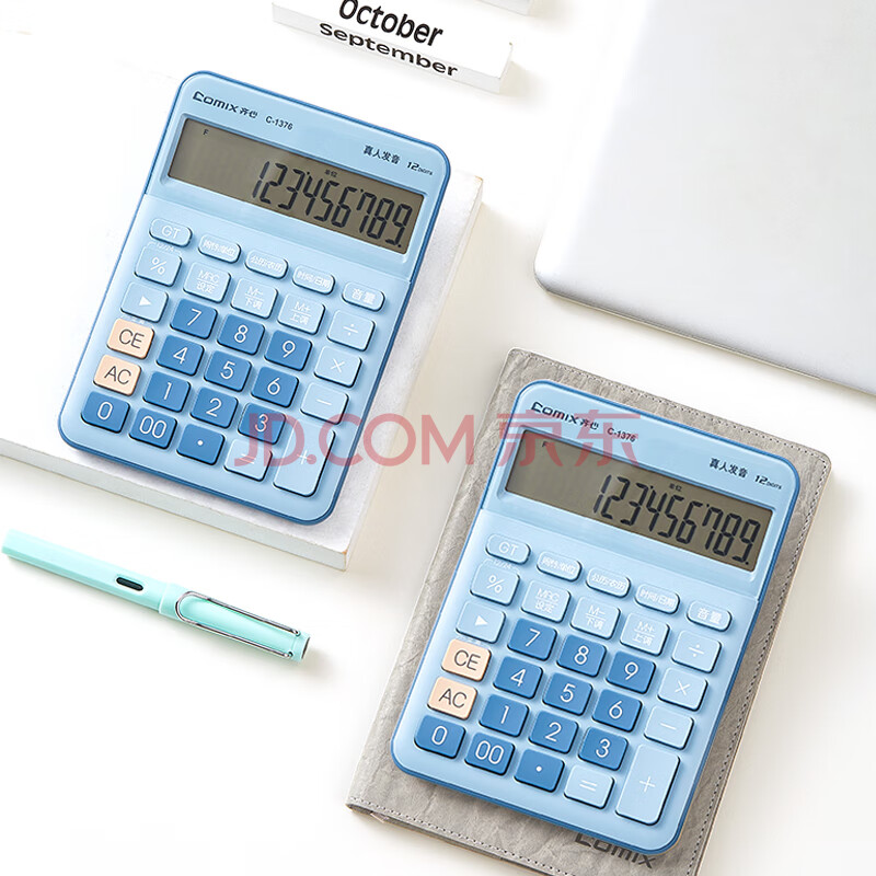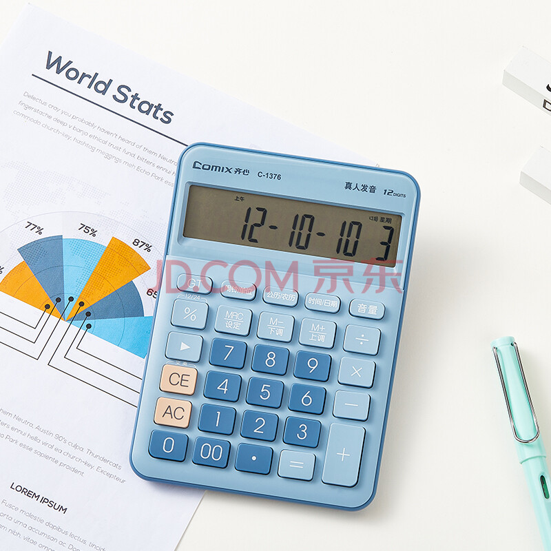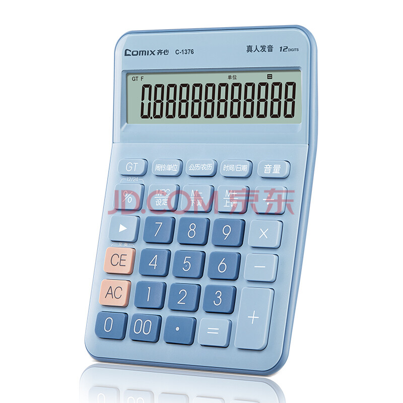 商品相册:齐心(Comix)语音计算器 12位大屏桌面计算机 办公/学习用品 高颜值简约时尚 蓝C-1376第