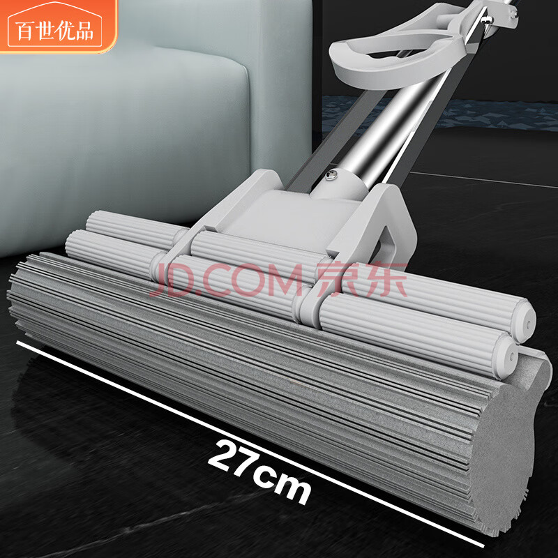 商品相册:百世优品 双排滚轮胶棉拖把27cm1头家用一拖净免手洗2025懒人拖把海绵吸水第