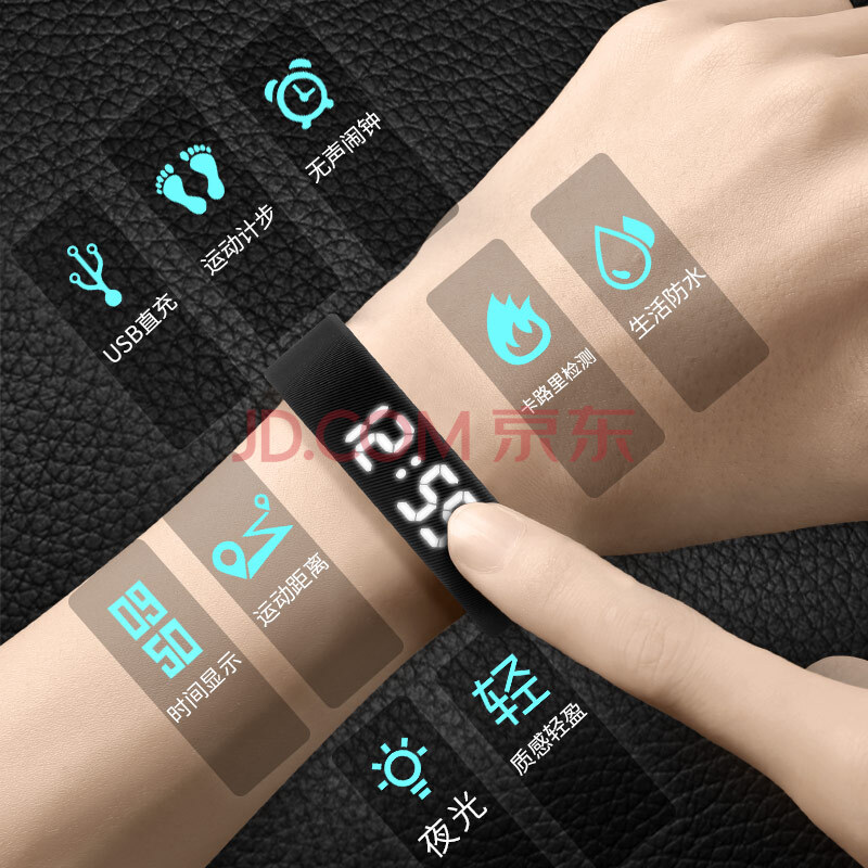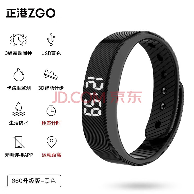商品相册:正港(ZGO)学生智能手环震动闹钟无声宿舍用跑步健身计时运动电子手表 660X第