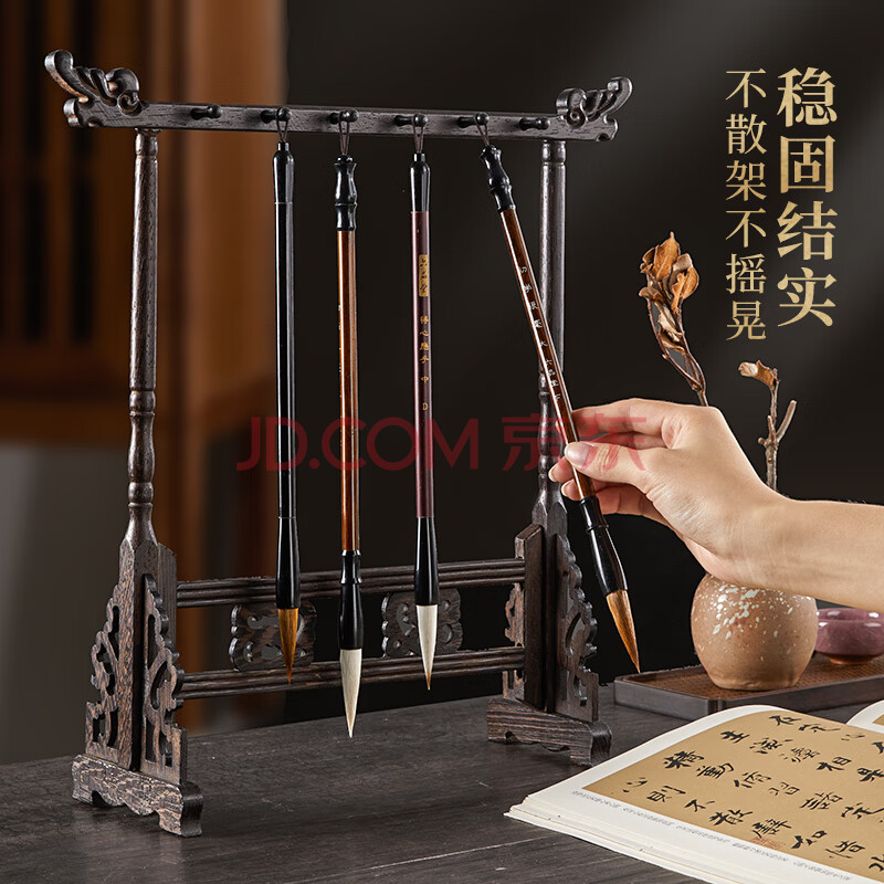 商品相册:六品书院毛笔笔架 12针挂简约鸡翅木实木挂毛笔书法挂架 复古文房四宝创意摆件热门商品【款式随机发】第