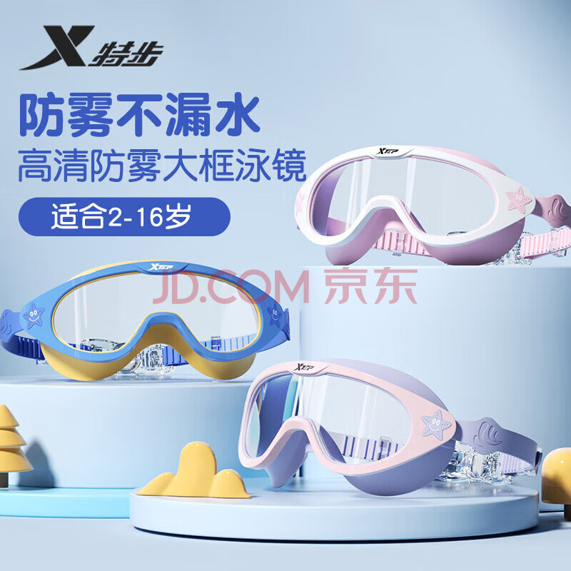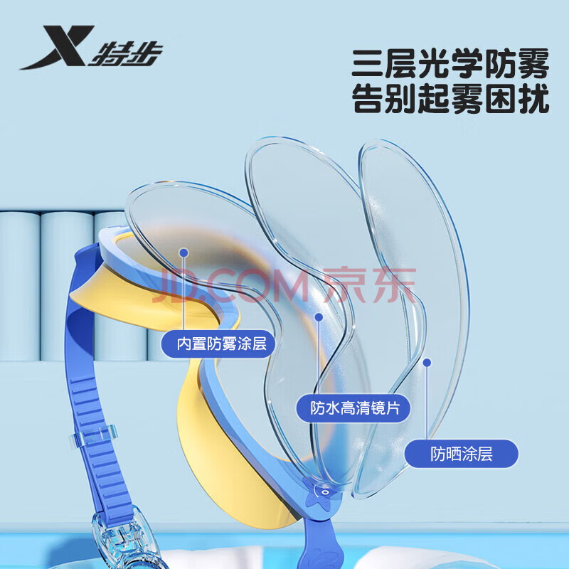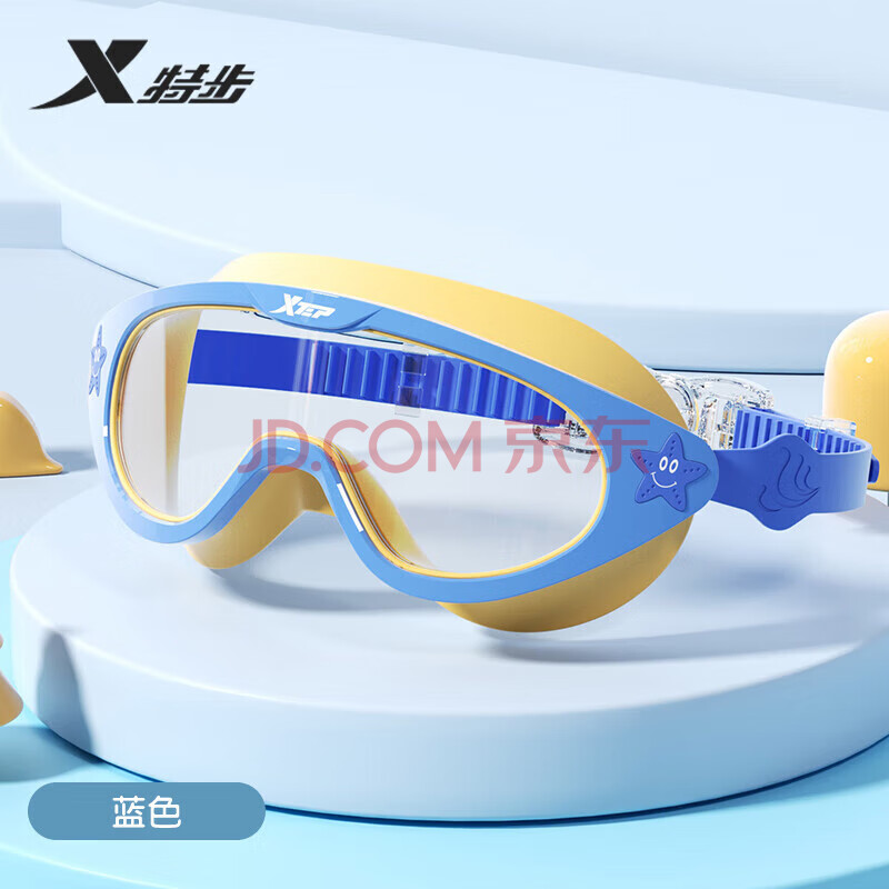 商品相册:特步(XTEP)儿童泳镜男女童高清防水防雾大框游泳眼镜学生训练游泳装备 蓝黄第