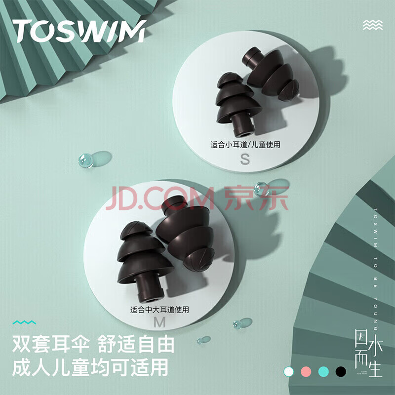 商品相册:TOSWIM拓胜专业游泳耳塞柔软舒适防水防中耳炎洗澡学游泳装备 水绿浮潜第