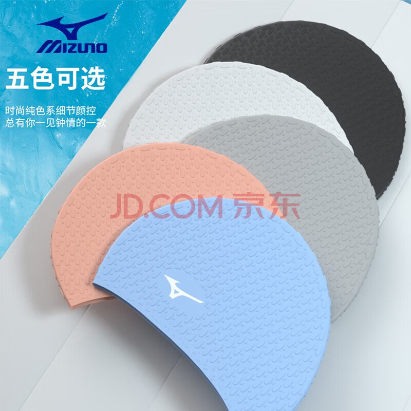 商品相册:美津浓(MIZUNO)游泳帽女长发加大防滑水滴帽男士防水护耳不勒头硅胶帽子1S53黑第