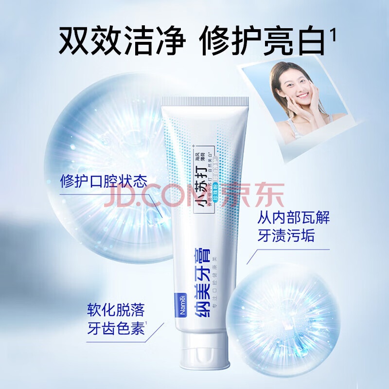 商品相册:纳美(Namei)小苏打牙膏亮白去牙渍清新口气含氟家庭护龈4支520g第