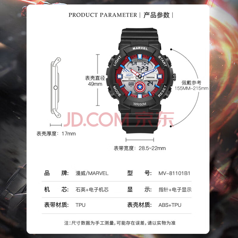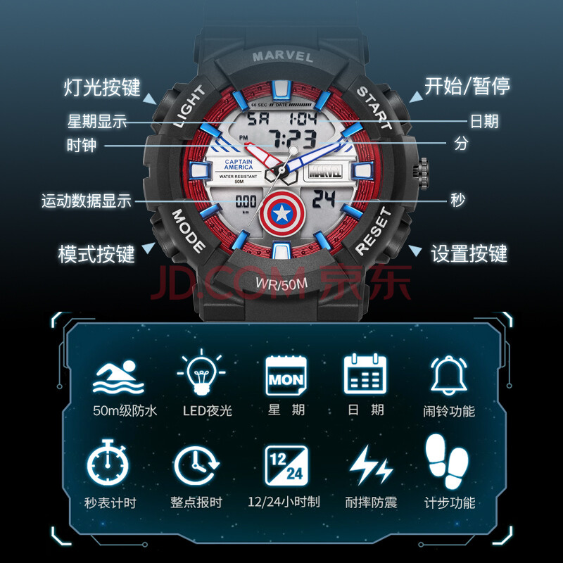 商品相册:漫威(Marvel)美队系列运动电子表多功能防水手表初高中学生儿童生日礼物开学第