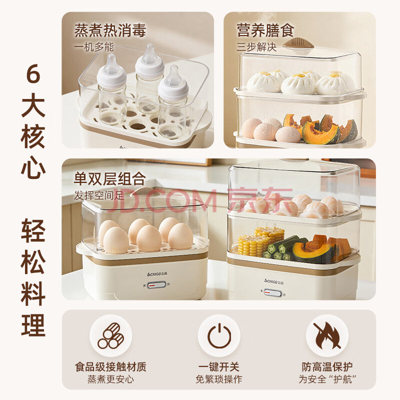 商品相册:志高(CHIGO)煮蛋器蒸蛋器 电蒸锅双层多功能早餐蒸煮一体机1-2人 小型鸡蛋羹神器一人高温自动断电2026款204第