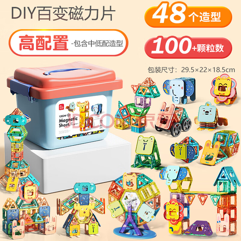商品相册:费乐(FEELO)磁力片拼装积木玩具儿童男女孩节日生日礼物100颗粒高配1503M第