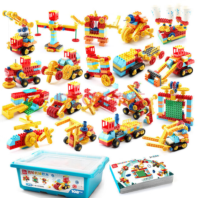 商品相册:费乐(FEELO)兼容乐高拼装积木齿轮玩具儿童男女孩科技教育2年级108颗粒第