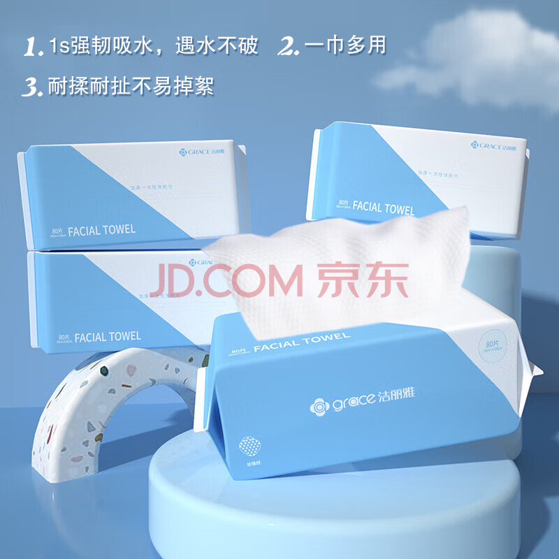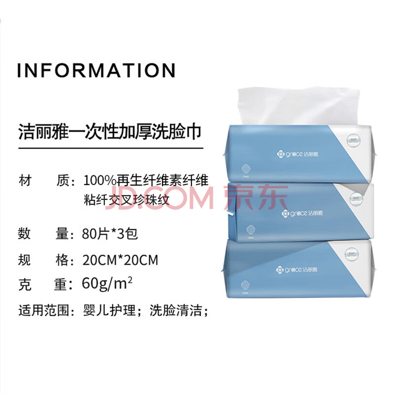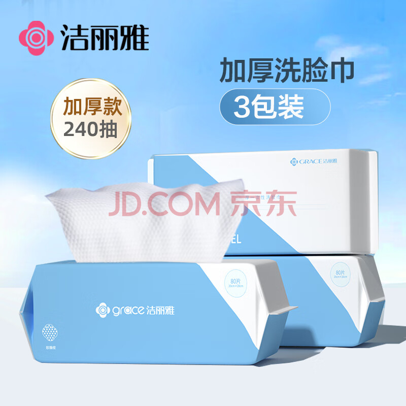 商品相册:洁丽雅(Grace)一次性毛巾洗脸巾洗面巾洁面巾擦脸巾3连包 20*20cm 80片/包第