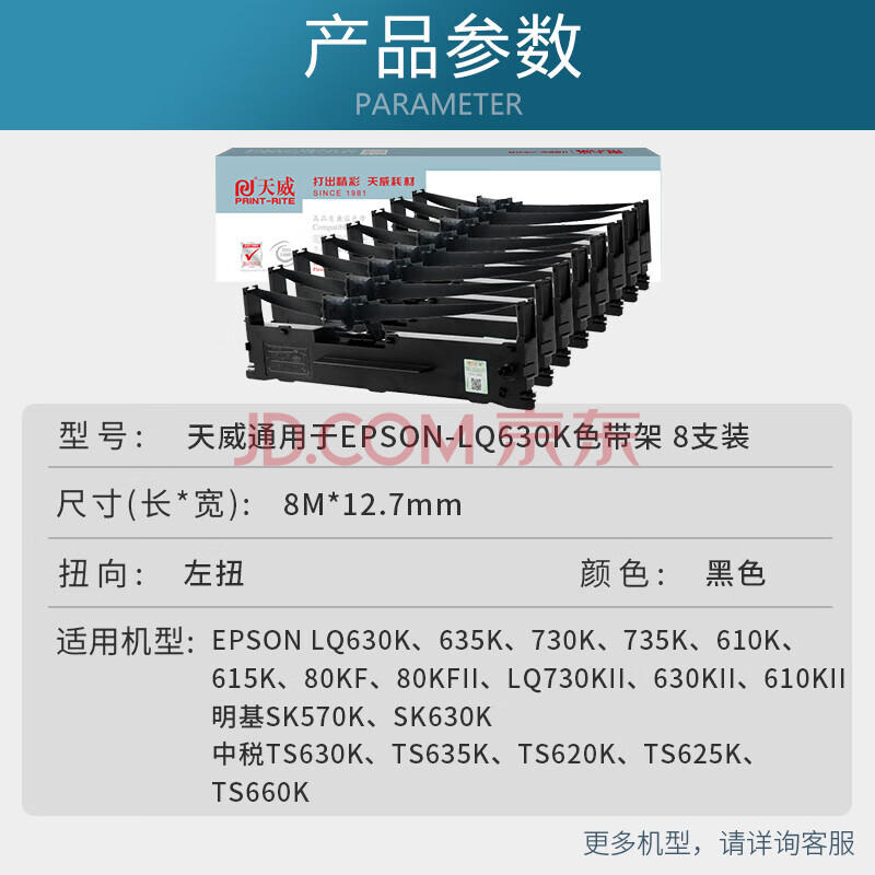 商品相册:天威LQ630K/LQ730K 8支装 适用爱普生EPSON LQ630K LQ635K LQ730K LQ735K LQ80KF打印机色带架第