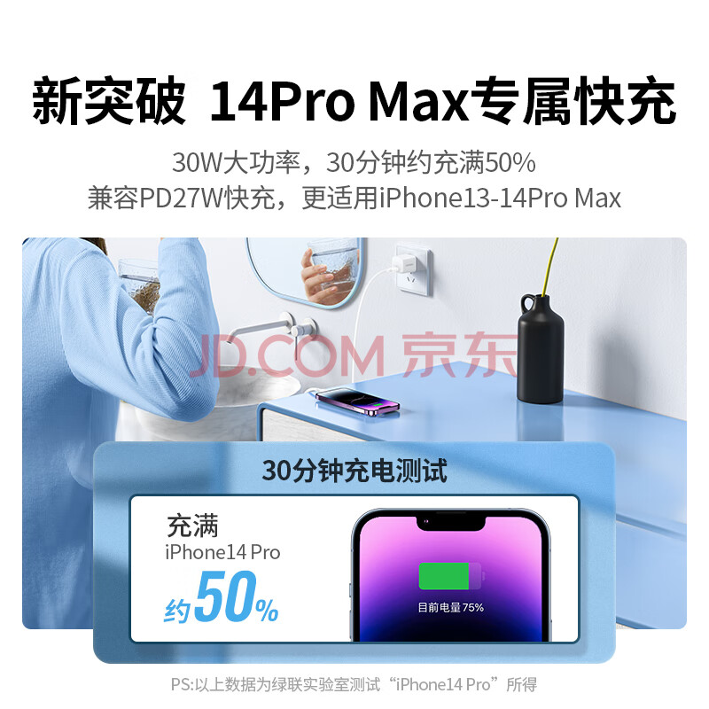 商品相册:绿联MFi认证30W氮化镓充电器线充套装PD20W/27W/Type-C快充头适用苹果iPhone14/13promax手机ipad第