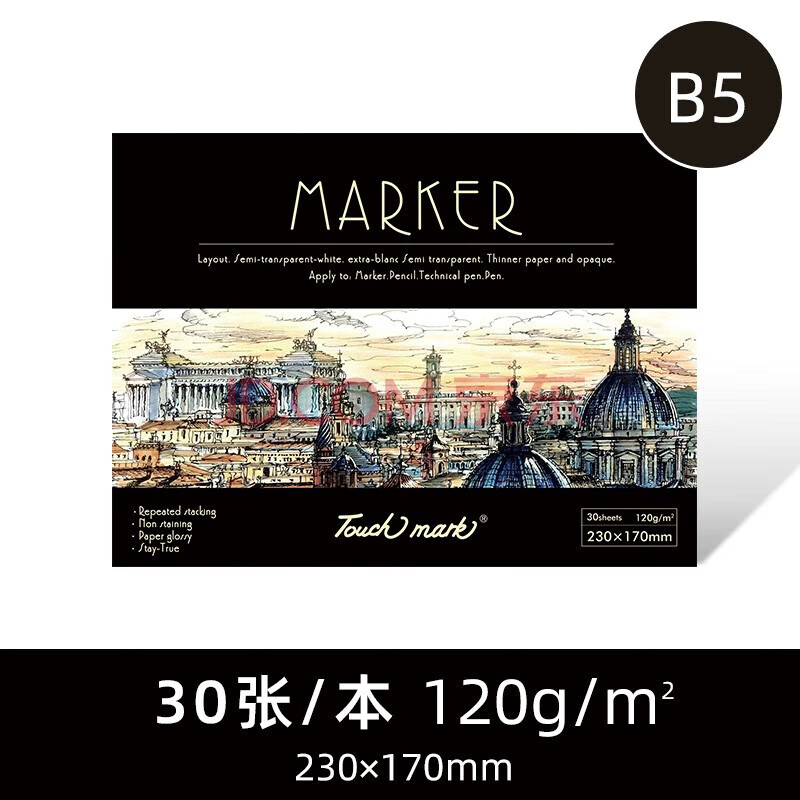 商品相册:Touch marktouchmark马克本B5/30张120g马克笔画画本学生美术动漫手绘马克笔专用临摹写生素描纸人物上色第