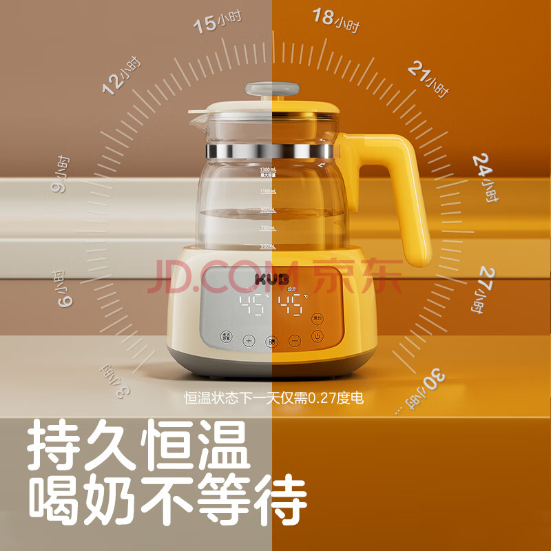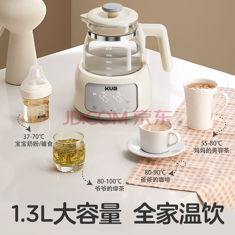 商品相册:可优比(KUB)恒温热水壶调奶器智能暖奶冲奶机养生壶0胶水 辛德白1.3L第1张/共5