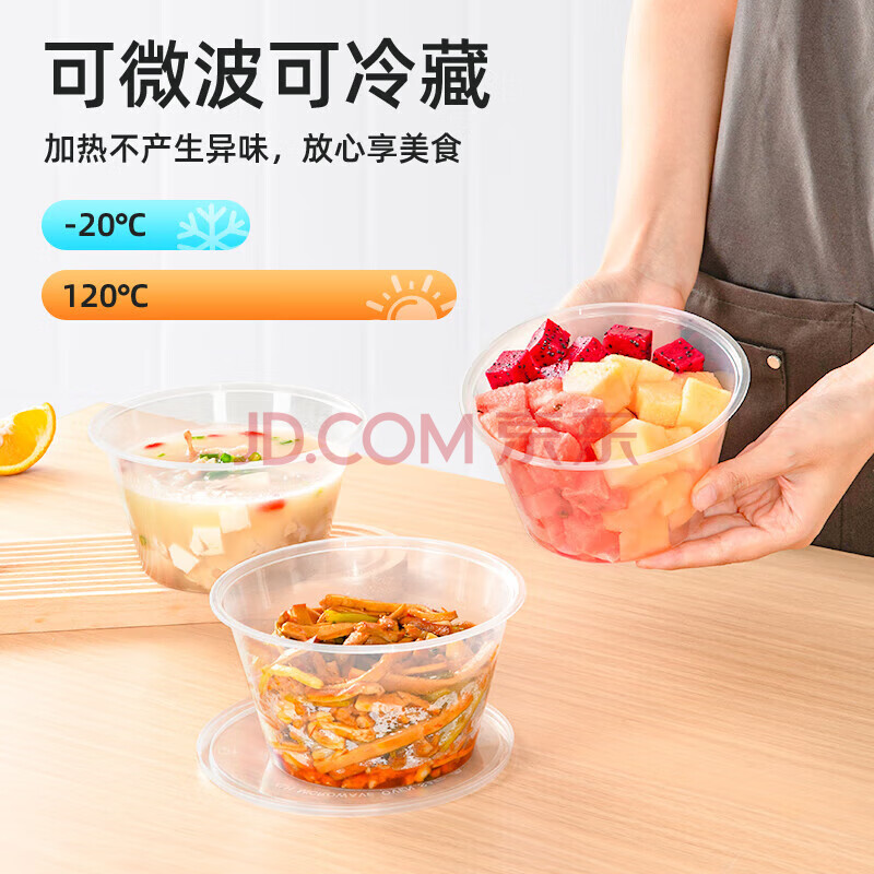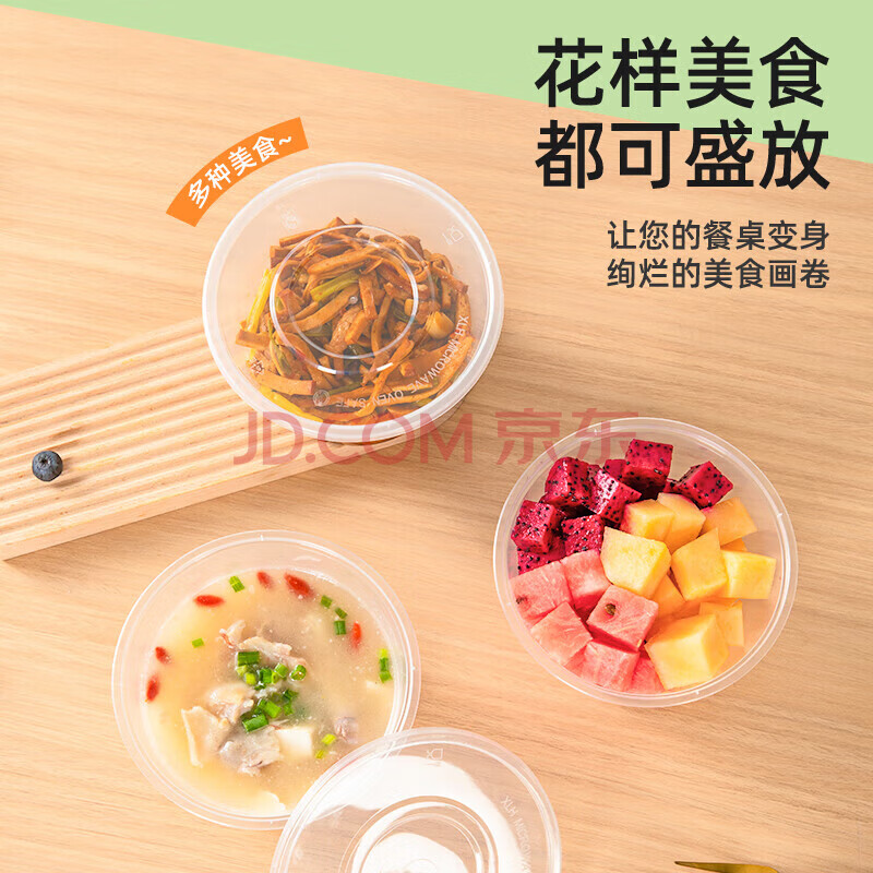 商品相册:特美居(temeiju)一次性饭盒圆形透明塑料快餐盒加厚带盖打包盒餐具300套装1000型第
