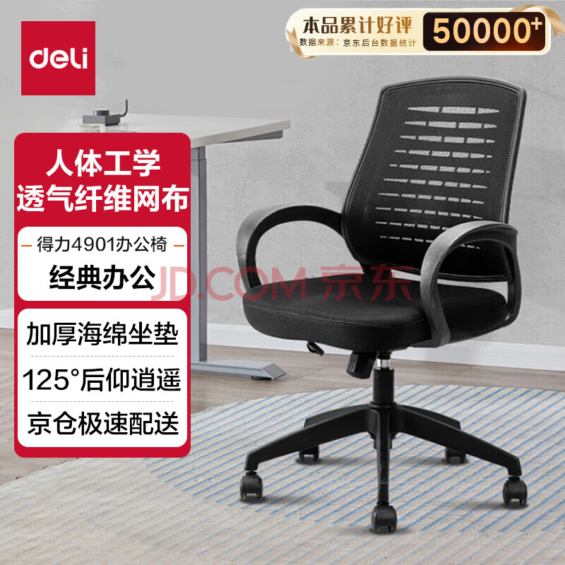 商品相册:得力(deli)简约舒适办公椅 特色椅背 人体工学电脑椅 职员网布椅子 4901第