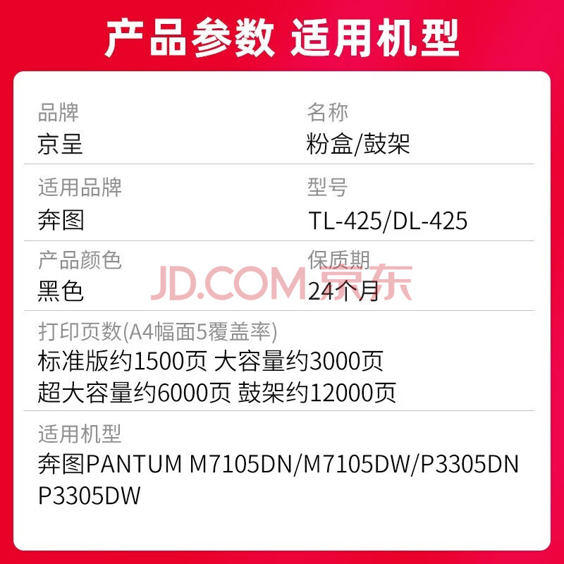 商品相册:京呈TL-425X粉盒超大容量适用奔图M7105DN M7105DW P3305DN P3305DW碳粉盒硒鼓打印机第