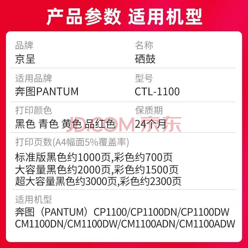 商品相册:京呈CTL-1100硒鼓适用奔图CP1100 CP1100DW CP1100DN打印机碳粉盒 【3100页】CTL-1100K 标准四色第