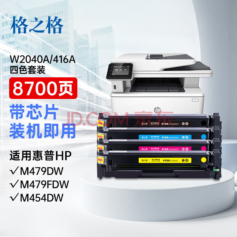 商品相册:格之格416a硒鼓适用惠普m479dw硒鼓 m479fdw m454dw m479fnw m454dn M480f hp w2040a硒鼓四色套装高清芯片第