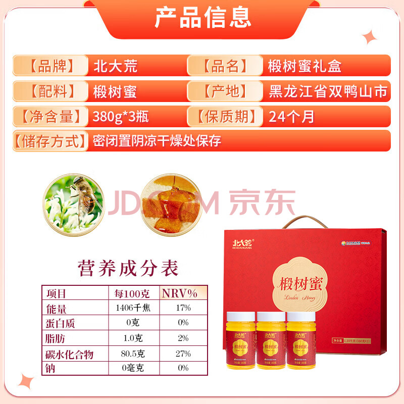 商品相册:北大荒 东北黑蜂 椴树蜜1140g 纯蜂蜜礼盒团购送长辈父母礼品礼物第