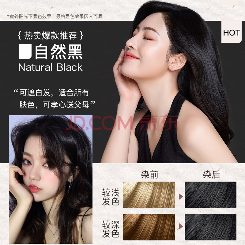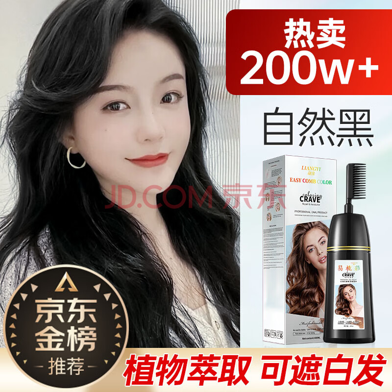商品相册:靓逸(LIANGYI)易梳彩蓝自然黑400ml染发剂植物配方纯染发膏盖白头发不沾男女士第