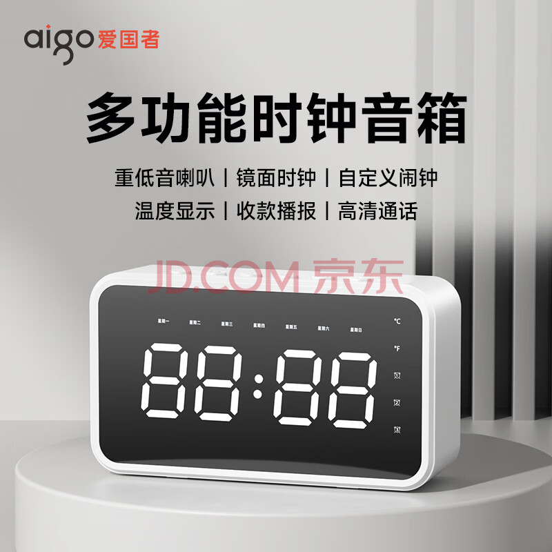 商品相册:爱国者T28Pro蓝牙音响 智能时钟桌面电脑音响 便携低音炮插卡无线音箱收款播报 磨砂白第