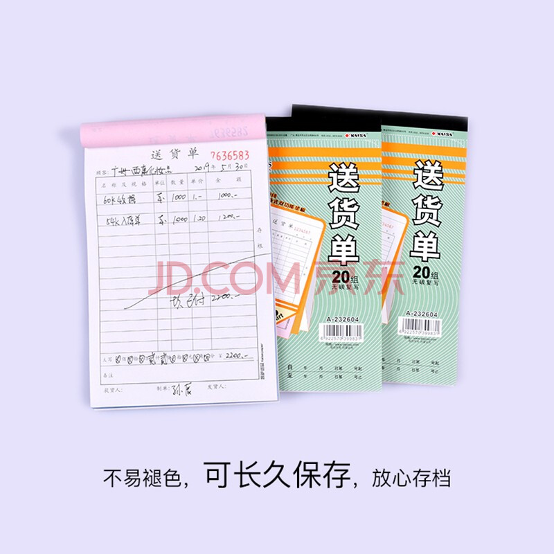商品相册:凯萨(KAISA)32K/三联送货单 3联20组无碳复写财务单据竖版送货单据10本装 A-232604第