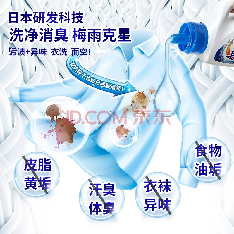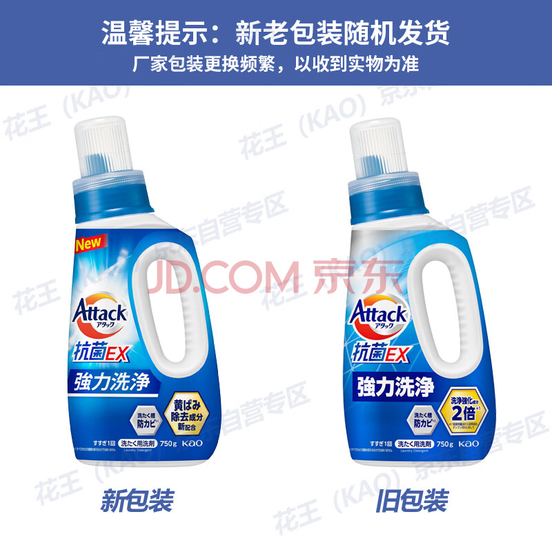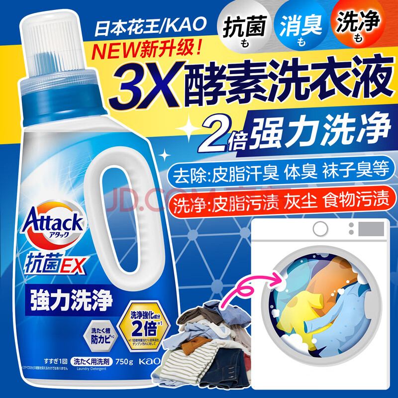 商品相册:花王(KAO)3X抗菌洗衣液750g 超浓缩酵素除味洁霸阴干不臭去污渍洗衣精第
