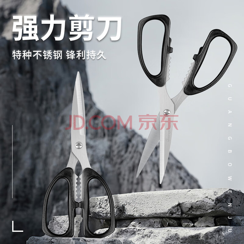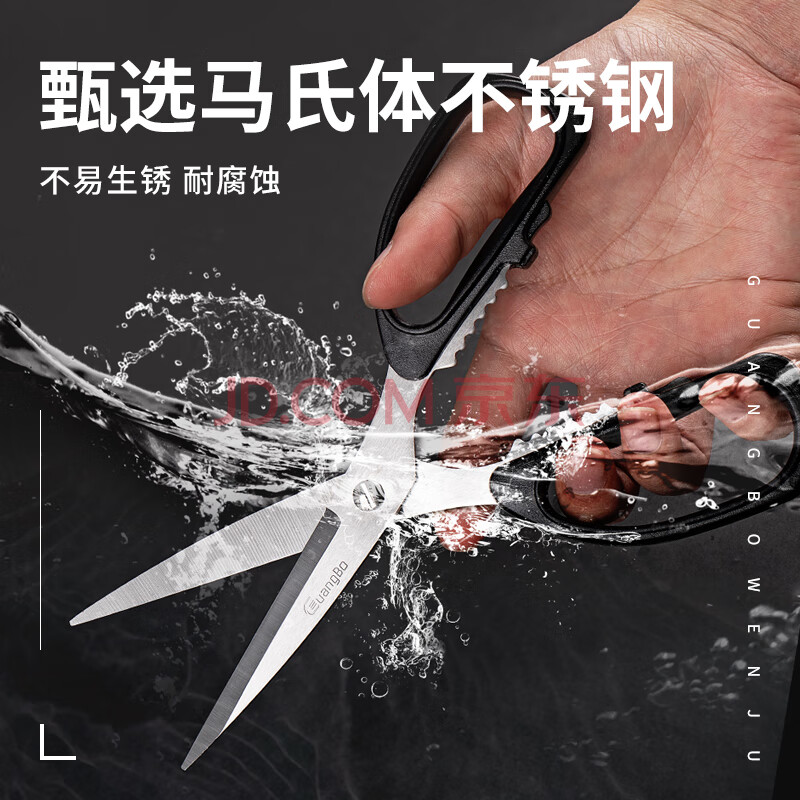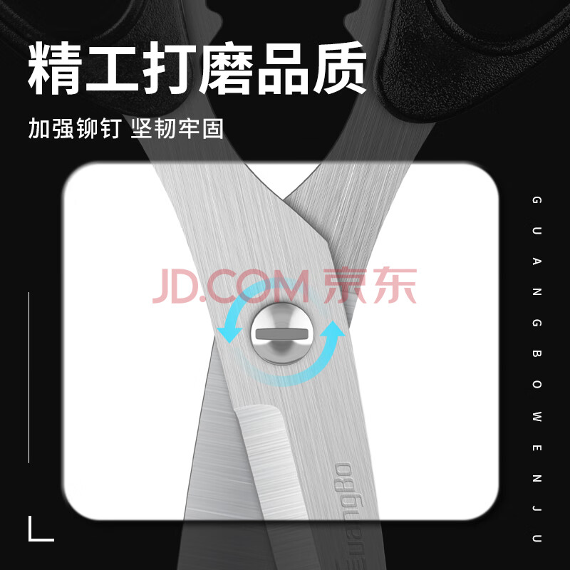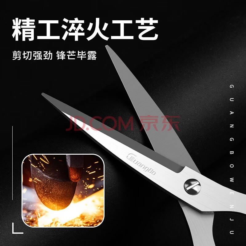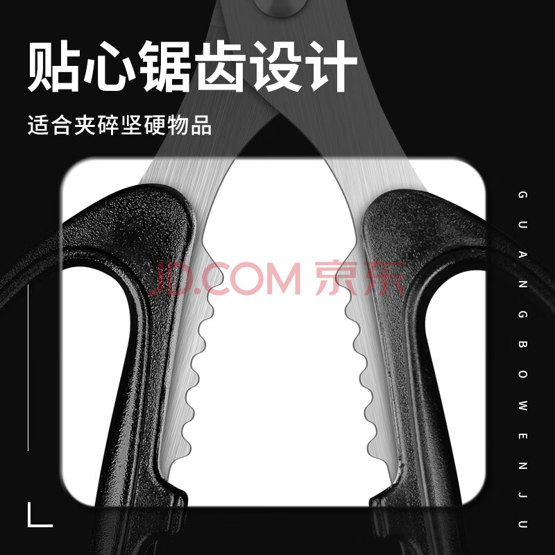 商品相册:广博(GuangBo)195mm锋利型家庭办公两用不锈钢大剪刀锯齿剪子不易生锈黑色单把装 JD8258第