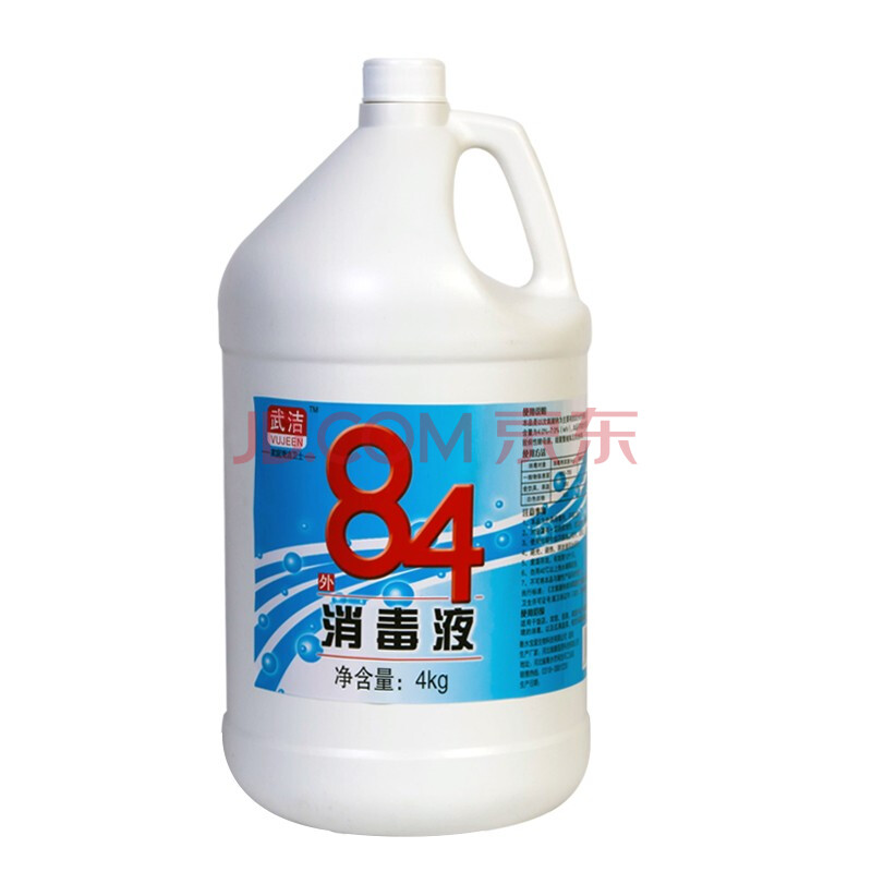 商品相册:武洁84消毒液4kg*4桶整箱装含氯消毒剂除菌杀菌衣物漂白水地板第