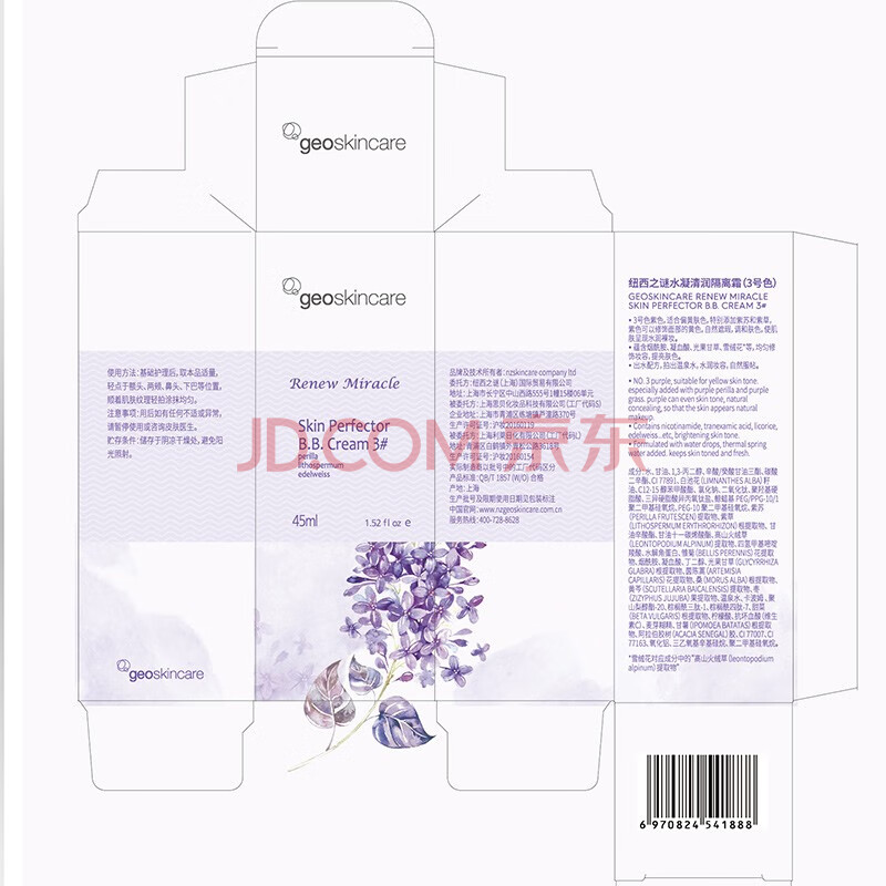 商品相册:纽西之谜遮瑕隔离霜保湿水润妆前乳色素颜霜紫色3号色45ml第