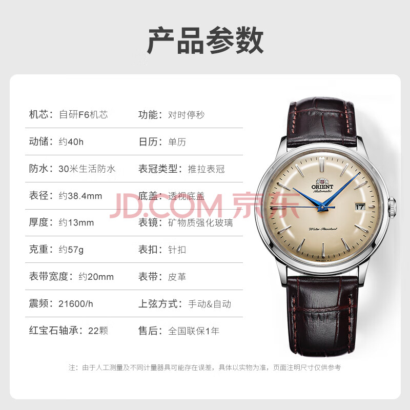 商品相册:ORIENT东方双狮手表男简约复古泡泡镜日本全自动机械表生日礼物AC0M04第